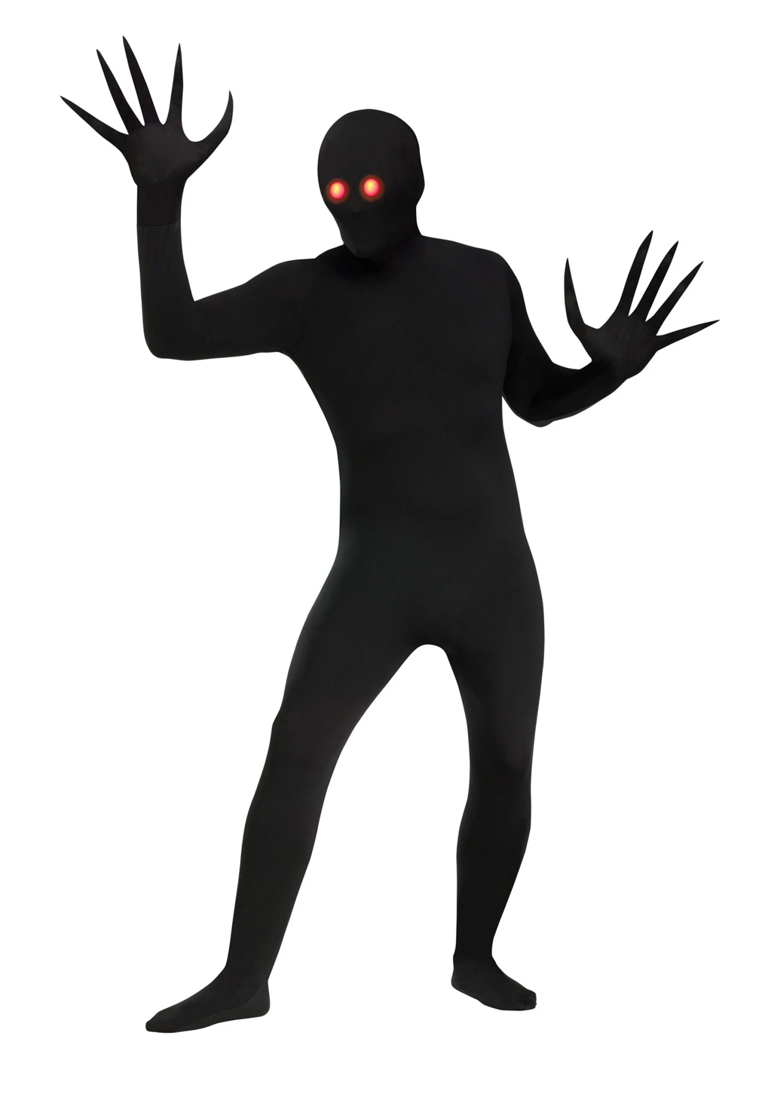 Every horror movie has some sort of bloody monster with sharp claws or a weird mask, but sometimes it’s what you can’t see that evokes the most fear. Picture this. The night extinguishes every light; not even starlight dares to shine. Dead silence. From the depths of the darkness, a shadowy figure writhes closer and closer. Glowing red eyes begin to dance in the darkness. Is it a monster? A demon? Perhaps a person? Your imagination runs wild with all the evil creatures it could be as it creeps closer to you and the panic strangles your chest with a primal fear. Creepy, right? Now imagine you ARE that shadowy figure with glowing eyes. That’s what this shadow demon costume is all about!