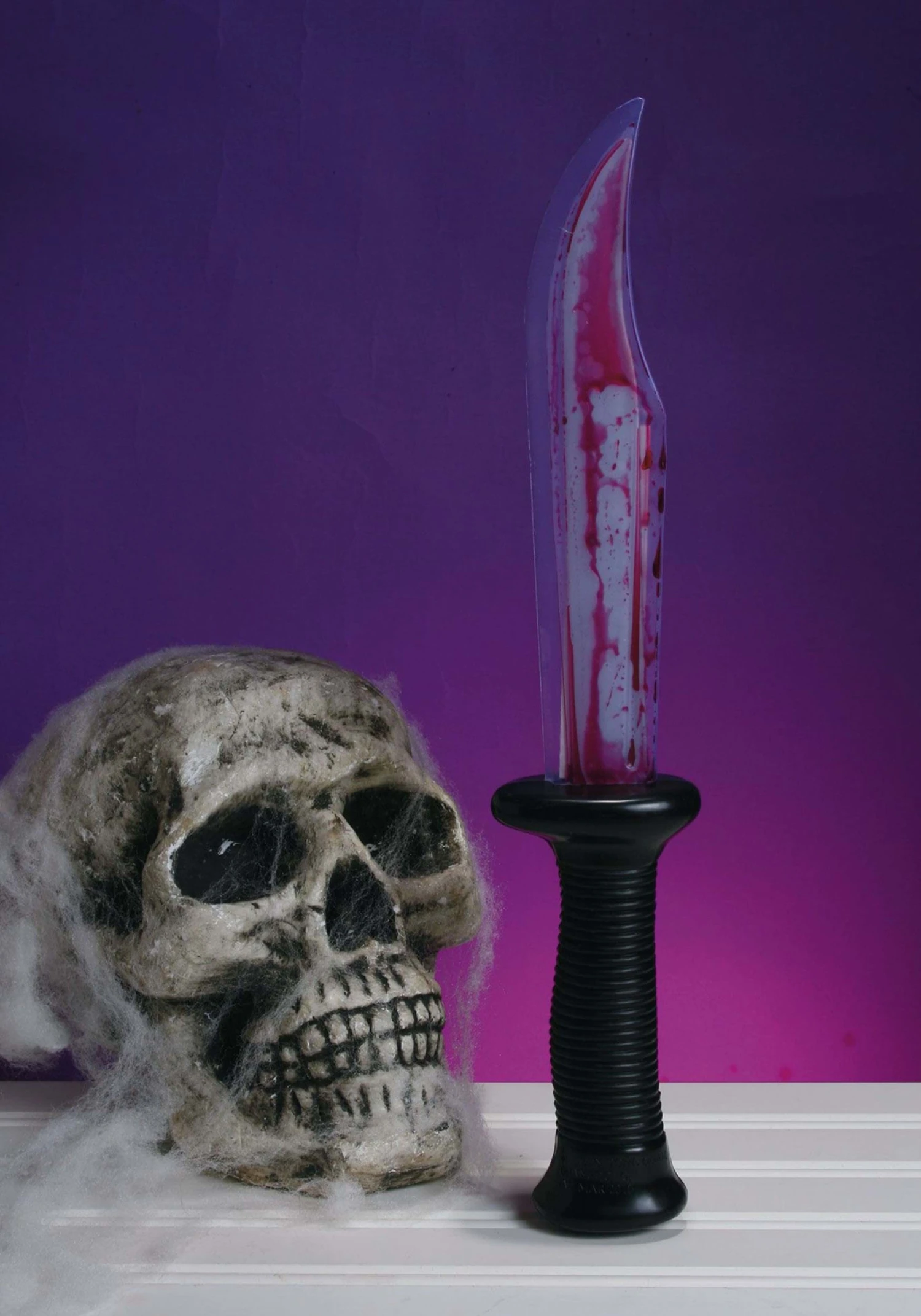 This plastic toy is molded to look like a real knife. Then when you turn the blade upside down you can watch faux blood ooze down. Don’t worry about making a mess. When you turn the knife right side up again the blood will flow back into the handle and leave the blade as clean as freshly forged steel. This accessory is approximately 13-inches long from the tip of the knife to the blunt end of the handle.