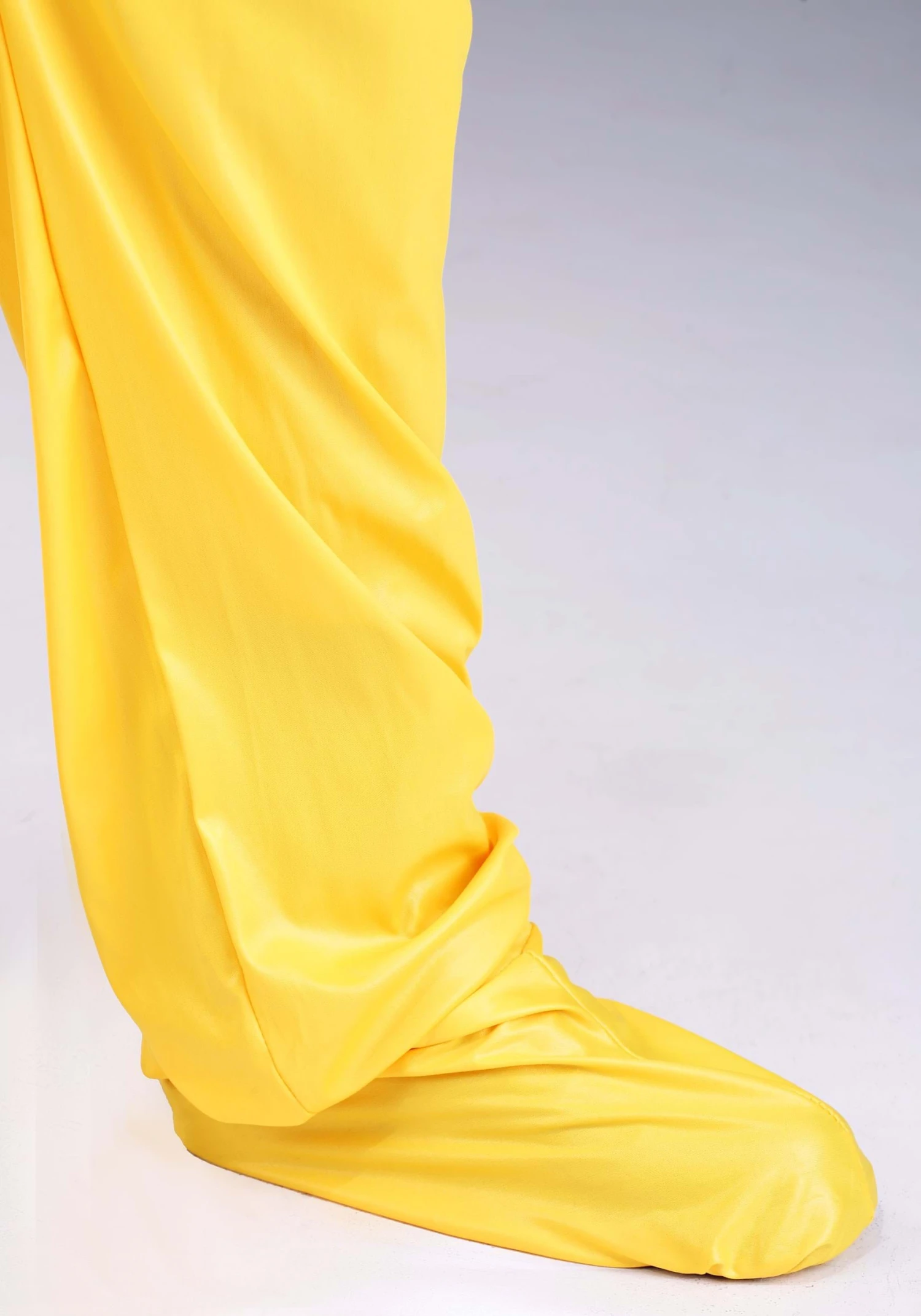- Yellow jumpsuit fits with zipper up the front
