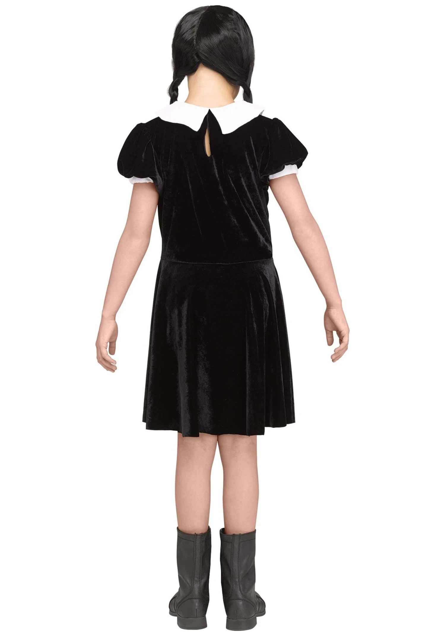 Embrace your creepy side with this Kid’s Gothic Girl Costume Dress! The knee-length dress fastens at the back of the neck and is made of splendidly somber black velour that will chase the frivolity and merriment out of any room you occupy. Its only adornment is a pointed white collar sewn to the dress’s neckline. Pair it with some combat boots or your favorite sneakers, and don’t forget your signature pigtails! You’ll be frightening the other children in no time.