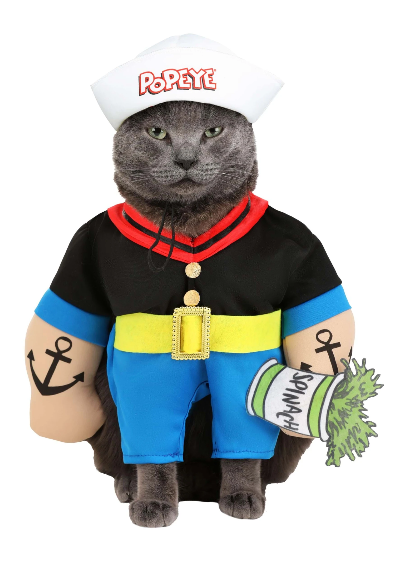 How about your dog? Does your dog have an unusual interest in strange foods, like spinach? Does he constantly come to your rescue? Do you think he’d look adorable with an anchor tattoo on his arm? Well, it sounds like your doggie is ready to wear this Dog Popeye Costume!