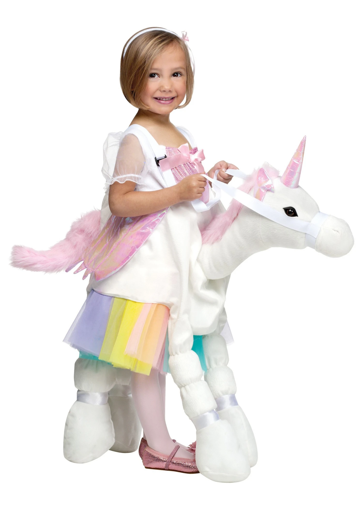 Since medieval times, unicorns have been associated with young girls, seen as a symbol of innocence and purity. This Ride A Unicorn costume is for those who just need to find a beautiful supernatural wonder and plop themselves down on it! Carry me around, innocence and purity! When your little angel wears this Ride A Unicorn Costume, she can ride headlong into her favorite fairy tale!