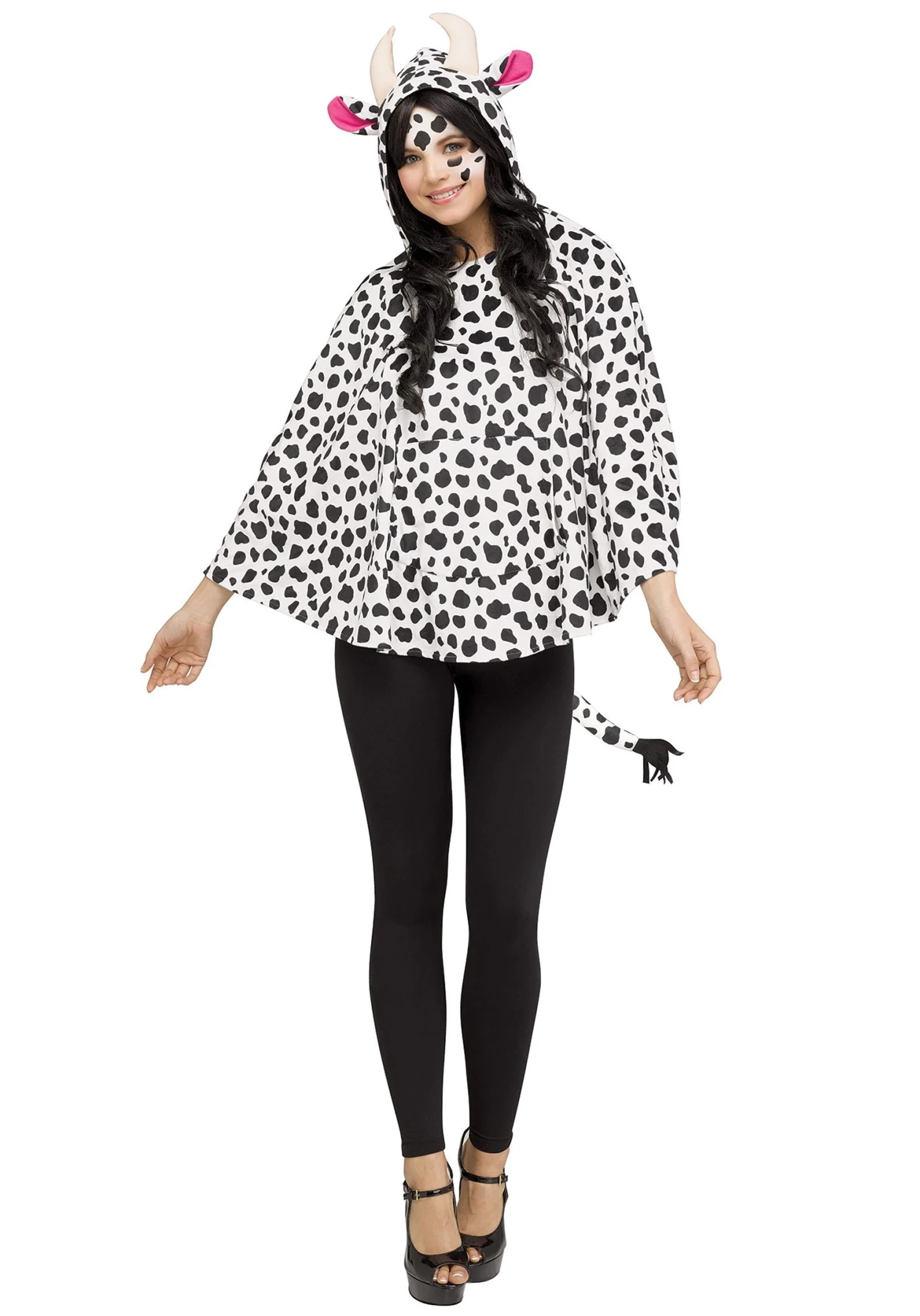 It’s never been easier to slip into the Holstein role as it is now. Simply slip this cow print poncho over your shoulders and watch as you slip into a countryside demeanor. This poncho has a tasseled tail at the back and has an attached hood with horns and adorable pink lined ears. With a simple design that can be rolled up and tucked in a bag, you can easily throw this on over your clothes for an instant costume. We can’t think of a butter way to wing it!